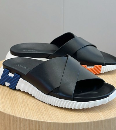 [홍콩명품.Hermes] 에르메스 23SS 로고 레더 가죽 샌들 슬리퍼 (블랙), SE3242, S2, 명품스니커즈,운동화,구두,로퍼,하이탑,신발 > 신발