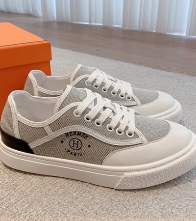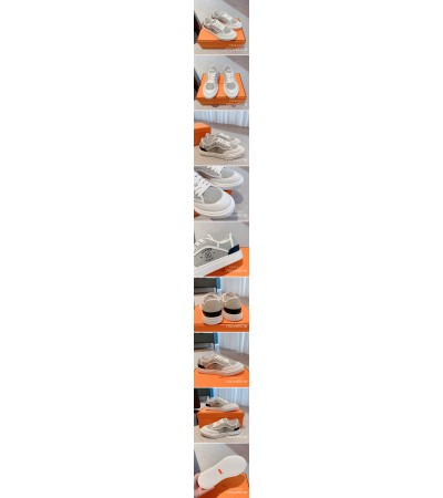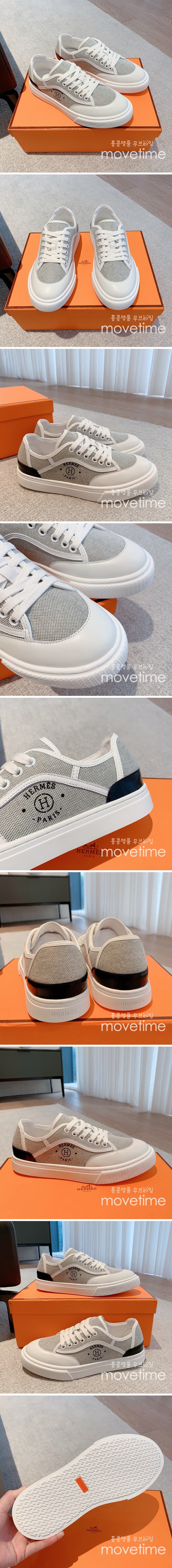 [홍콩명품.Hermes] 에르메스 23SS 로고 레더 가죽 레이어드 스니커즈 운동화 (그레이-화이트), SE3261, S3, 명품스니커즈,운동화,구두,로퍼,하이탑,신발 > 신발