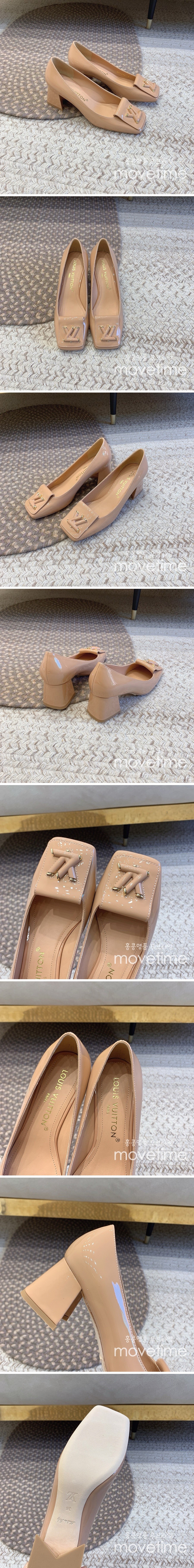 • [홍콩명품.LOUIS VUITTON] 루이비통 24SS 로고 여성 SHAKE 레더 가죽 5.5cm굽 구두 (베이지), SE3308, SMS, 명품스니커즈,운동화,구두,로퍼,하이탑,신발