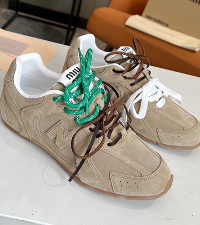 • [홍콩명품,MIU MIU] 미우미우 24SS 로고 뉴발란스 콜라보 여성 스니커즈 운동화 (베이지), SE3319, SMS, 명품스니커즈,운동화,구두,로퍼,하이탑,신발