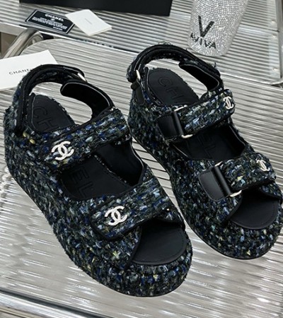 • [홍콩명품.CHANEL] 샤넬 24SS 로고 여성 7.5cm굽 샌들 (그린패턴), SE3346, SMS, 명품스니커즈,운동화,구두,로퍼,하이탑,신발