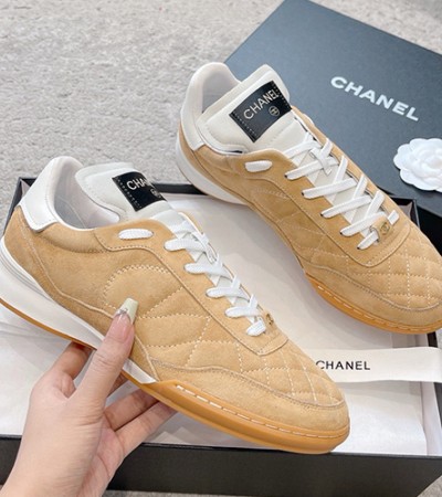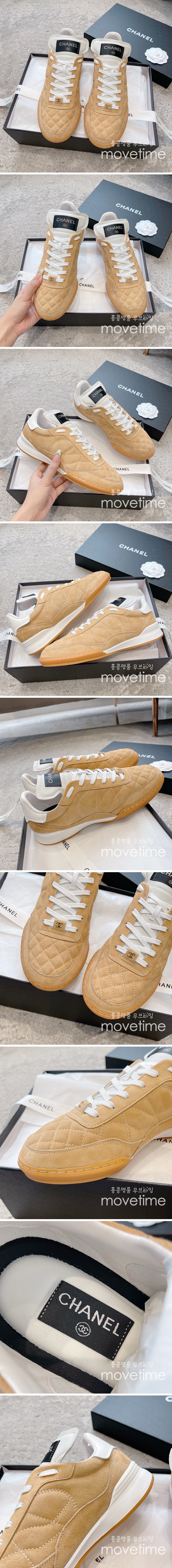 • [홍콩명품.CHANEL] 샤넬 24SS 로고 여성 퀄팅 레더 가죽 스니커즈 운동화 (베이지), SE3356, SMS, 명품스니커즈,운동화,구두,로퍼,하이탑,신발