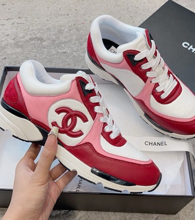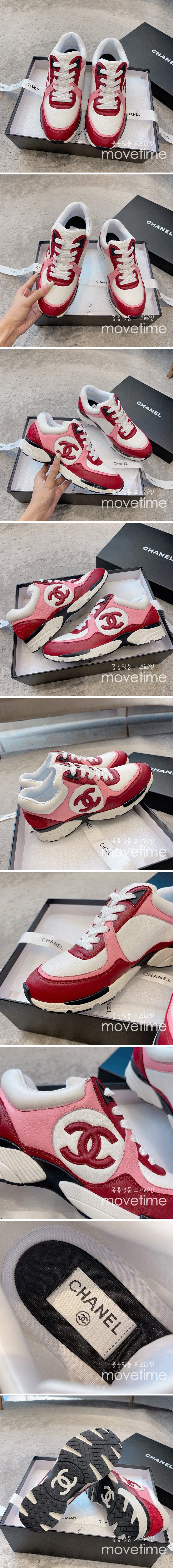 • [홍콩명품.CHANEL] 샤넬 24SS 로고 여성 레더 가죽 스니커즈 운동화 (화이트-레드), SE3360, SMS, 명품스니커즈,운동화,구두,로퍼,하이탑,신발