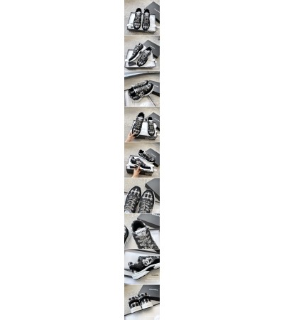 • [홍콩명품.CHANEL] 샤넬 24SS 로고 여성 레더 가죽 스니커즈 운동화 (블랙패턴), SE3363, SMS, 명품스니커즈,운동화,구두,로퍼,하이탑,신발