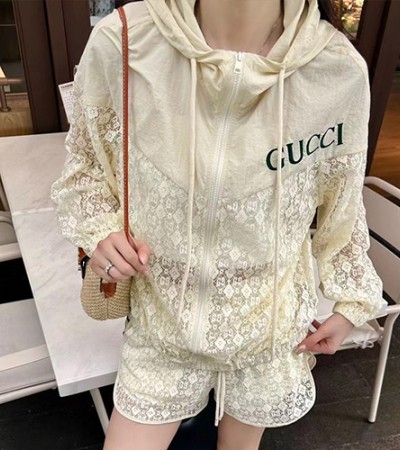 [홍콩명품.Gucci] 구찌 24SS 로고 여성 후드 스킨 자켓 + 미니 쇼츠 반바지 상하의 세트 (아이보리), BM14571, S1F, 홍콩명품의류,구매대행,온라인명품 요약정보 및 구매