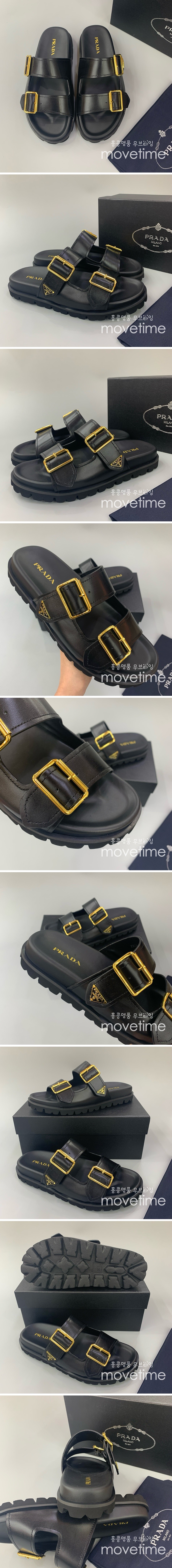 [홍콩명품,PRADA] 프라다 24SS 로고 레더 가죽 샌들 슬리퍼 (블랙), SE3572, PMD, 명품스니커즈,운동화,구두,로퍼,하이탑,신발 > 신발