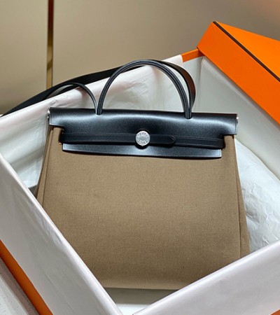 • [홍콩명품.Hermes] 에르메스 24SS 로고 HERBAG 핸드백 토트백 (불랙-브라운-은장), BGM3257, H3, 홍콩명품가방,명품쇼핑몰,크로스백,핸드백,구매대행,무브타임
