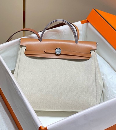 • [홍콩명품.Hermes] 에르메스 24SS 로고 HERBAG 핸드백 토트백 (브라운-아이보리-은장), BGM3258, H3, 홍콩명품가방,명품쇼핑몰,크로스백,핸드백,구매대행,무브타임