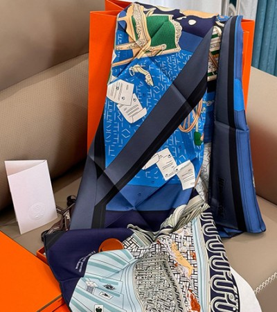 [홍콩명품.Hermes] 에르메스 24SS 로고 패턴 90-90cm 실크 리버서블 스카프 머플러, ET2411, H3, 명품악세사리,팔찌,귀걸이,반지 > 넥타이/스카프