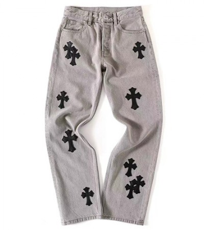 [홍콩명품.Chrome Hearts] 크롬하츠 24SS 크로스로고 데님 팬츠 진 청바지 (그레이), BM14727, TT, 홍콩명품의류,구매대행,온라인명품 > 남자의류