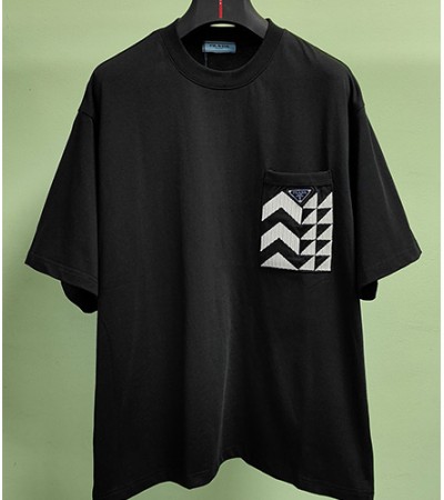 [홍콩명품,PRADA] 프라다 24SS 삼각로고 포켓 반팔 티셔츠 (블랙), BM14780, JL, 홍콩명품의류,구매대행,온라인명품 > 남자의류