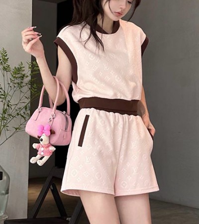 • [홍콩명품.LOUIS VUITTON] 루이비통 23SS 로고 모노그램 여성 슬리브리스 쇼트 탑 티셔츠 + 미니 쇼츠 반바지 상하의 세트 (2컬러), BM14807, TBG, 홍콩명품의류,구매대행,온라인명품