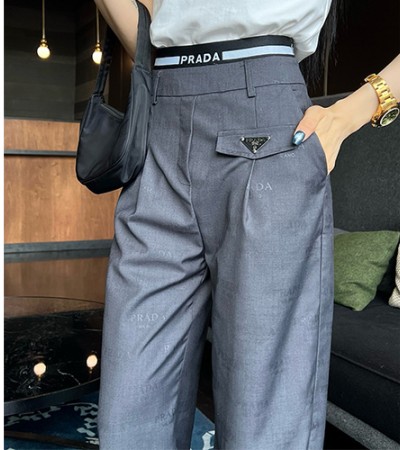 • [홍콩명품,PRADA] 프라다 24SS 삼각로고 여성 오버핏 밴딩 정장 팬츠 바지 (2컬러), BM14818, TBG, 홍콩명품의류,구매대행,온라인명품