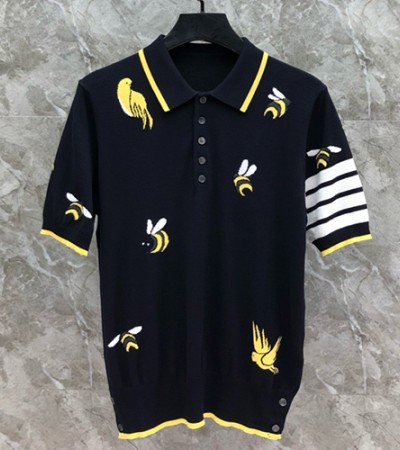 • [홍콩명품.THOME BROWNE] 톰브라운 24SS 로고 그래픽 4바 폴로 니트 반팔 티셔츠 (3컬러), BM14849, TB1, 홍콩명품의류,구매대행,온라인명품