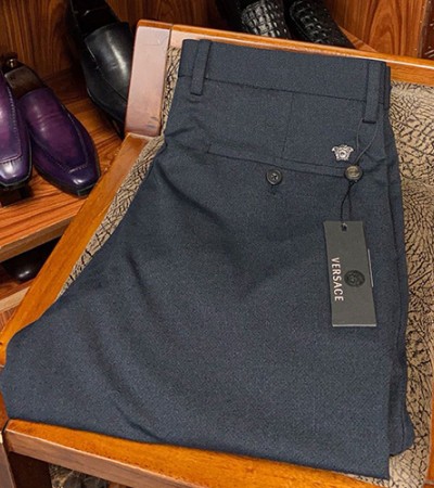 • [홍콩명품.VERSACE] 베르사체 24SS 로고 정장 팬츠 바지 (다크그레이), BM14872, S1F, 홍콩명품의류,구매대행,온라인명품