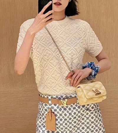 [홍콩명품.LOUIS VUITTON] 루이비통 24SS 로고 모노그램 여성 니트 반팔 티셔츠 (화이트), BM14891, TBG, 홍콩명품의류,구매대행,온라인명품 > 여성몰