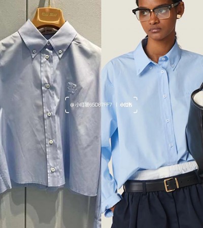 [홍콩명품,MIU MIU] 미우미우 24SS 로고 자수 여성 쇼트 남방 셔츠 (스카이블루), BM14935, SG, 홍콩명품의류,구매대행,온라인명품 요약정보 및 구매