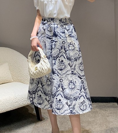 • [홍콩명품,Christian Dior] 디올 24SS 로고 패턴 여성 미디 스커트 (화이트), BM14942, SG, 홍콩명품의류,구매대행,온라인명품