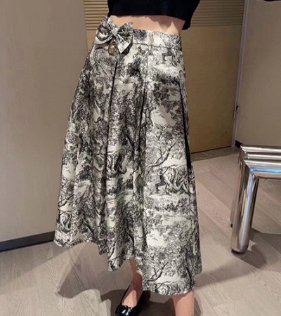 • [홍콩명품,Christian Dior] 디올 24SS 로고 정글 패턴 여성 리본 장식 미디 스커트 (화이트), BM14944, SG, 홍콩명품의류,구매대행,온라인명품