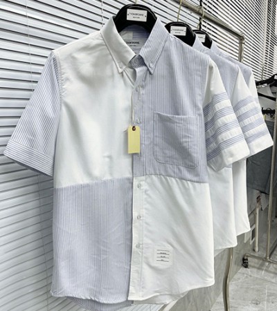 • [홍콩명품.THOME BROWNE] 톰브라운 24SS 로고 4바 반팔 남방 셔츠, BM14972, RED, 홍콩명품의류,구매대행,온라인명품