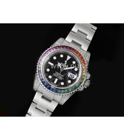 • [홍콩명품시계.ROLEX] 로렉스 롤렉스 서브마리너 40mm 레인바우 베젤 블랙 다이얼, 무브타임,남자명품시계,워치,손목시계