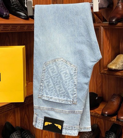 [홍콩명품,FENDI] 펜디 24SS 로고 몬스터아이 데님 팬츠 진 청바지, BM15009, S1F, 홍콩명품의류,구매대행,온라인명품 > 남자의류
