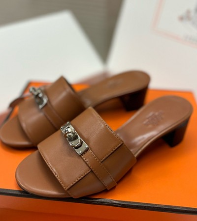 [홍콩명품.Hermes] 에르메스 24SS 로고 여성 KELLY 레더 가죽 굽 샌들 슬리퍼 (브라운), SE3719, H3, 명품스니커즈,운동화,구두,로퍼,하이탑,신발 요약정보 및 구매