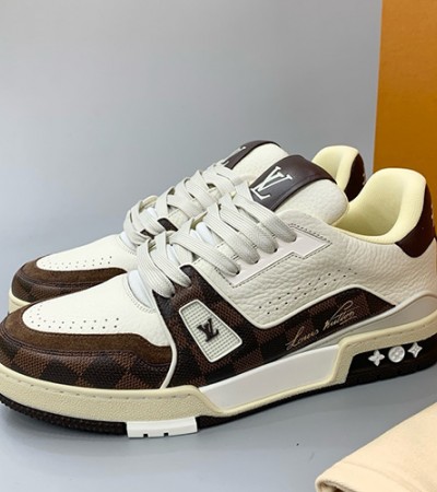 • [홍콩명품.LOUIS VUITTON] 루이비통 24SS 로고 다미에 트레이너 스니커즈 운동화 (아이보리-브라운), SE3729, PMD, 명품스니커즈,운동화,구두,로퍼,하이탑,신발