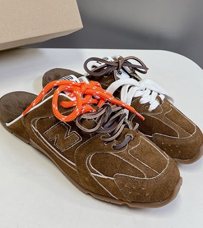 • [홍콩명품,MIU MIU] 미우미우 24SS 로고 뉴발란스 콜라보 뮬 스니커즈 운동화 (브라운), SE3781, ALW, 명품스니커즈,운동화,구두,로퍼,하이탑,신발