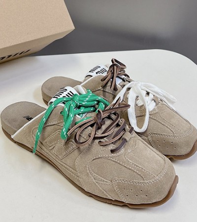 • [홍콩명품,MIU MIU] 미우미우 24SS 로고 뉴발란스 콜라보 뮬 스니커즈 운동화 (베이지), SE3782, ALW, 명품스니커즈,운동화,구두,로퍼,하이탑,신발