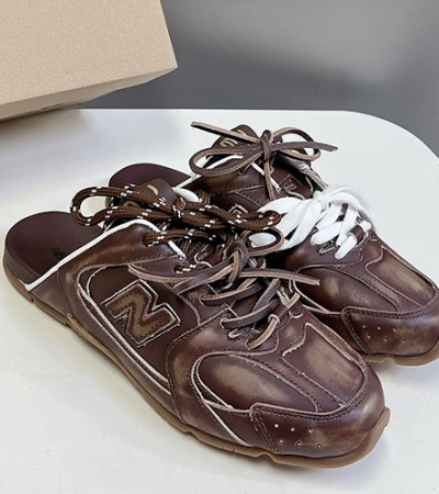 • [홍콩명품,MIU MIU] 미우미우 24SS 로고 뉴발란스 콜라보 뮬 스니커즈 운동화 (브라운), SE3783, ALW, 명품스니커즈,운동화,구두,로퍼,하이탑,신발