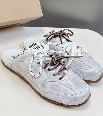• [홍콩명품,MIU MIU] 미우미우 24SS 로고 뉴발란스 콜라보 뮬 스니커즈 운동화 (라이트그레이), SE3784, ALW, 명품스니커즈,운동화,구두,로퍼,하이탑,신발