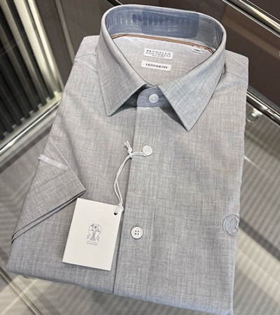 [홍콩명품.Brunello Cucinelli ] 브루넬로쿠치넬리 24SS 로고 자수 린넨 반팔 남방 셔츠 (그레이), BM15243, JS, 홍콩명품의류,구매대행,온라인명품 요약정보 및 구매