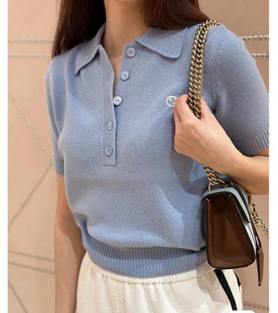 • [홍콩명품.Gucci] 구찌 24SS 로고 여성 카라 니트 반팔 티셔츠 (스카이블루), BM15282, TBG, 홍콩명품의류,구매대행,온라인명품