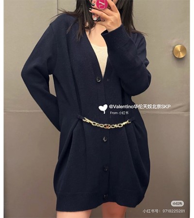 • [홍콩명품.Valentino] 발렌티노 24SS 로고 여성 V넥 롱 니트 가디건 (네이비), BM15575, TBG, 홍콩명품의류,구매대행,온라인명품