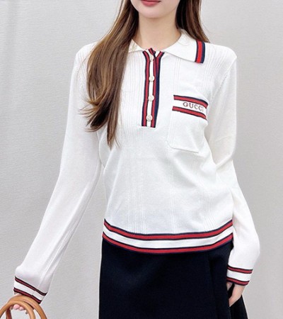 • [홍콩명품.Gucci] 구찌 24SS 로고 자수 여성 카라 니트 스웨터 (2컬러), BM15584, TBG, 홍콩명품의류,구매대행,온라인명품