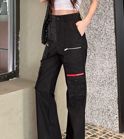 • [홍콩명품,PRADA] 프라다 24SS 로고 여성 나일론 카고 팬츠 바지 (블랙), BM15660, TBG, 홍콩명품의류,구매대행,온라인명품