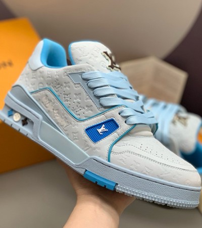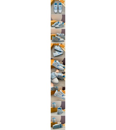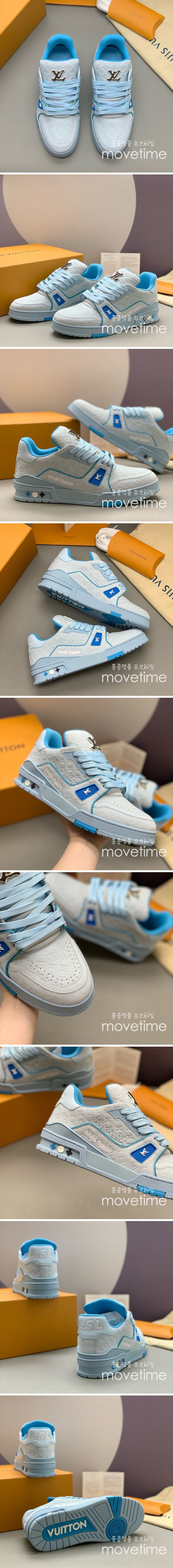 [홍콩명품.LOUIS VUITTON] 루이비통 24SS 로고 모노그램 남여 트레이너 스니커즈 운동화 (그레이-스카이블루), SE3981, PMD, 명품스니커즈,운동화,구두,로퍼,하이탑,신발 > 신발