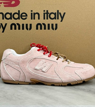 • [홍콩명품,MIU MIU] 미우미우 24SS 로고 뉴발란스 콜라보 남여 스니커즈 운동화 (핑크), SE4127, ALW, 명품스니커즈,운동화,구두,로퍼,하이탑,신발
