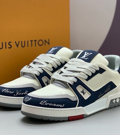 • [홍콩명품.LOUIS VUITTON] 루이비통 24SS 로고 모노그램 트레이너 스니커즈 운동화 (아이보리-블루), SE4136, PMD, 명품스니커즈,운동화,구두,로퍼,하이탑,신발