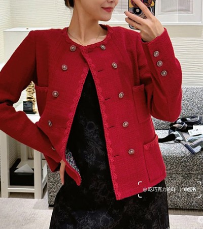 • [홍콩명품.CHANEL] 샤넬 24SS 로고 여성 라운드넥 트위드 자켓 (레드), BM16363, PG, 홍콩명품의류,구매대행,온라인명품
