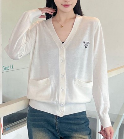 [홍콩명품,PRADA] 프라다 24SS 로고 자수 여성 V넥 니트 가디건 (2컬러), BM16458, TBG, 홍콩명품의류,구매대행,온라인명품 > 여성몰