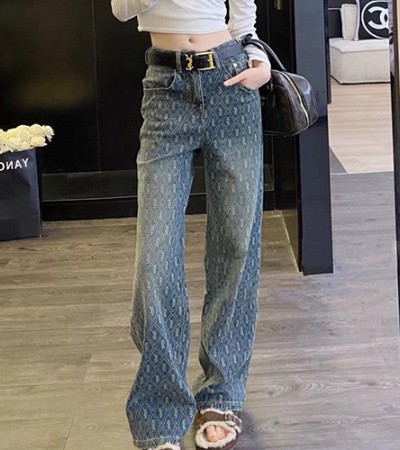 • [홍콩명품.YSL] 입생로랑 24SS 로고 패턴 여성 오버핏 데님 팬츠 진 청바지, BM16535, DT, 홍콩명품의류,구매대행,온라인명품