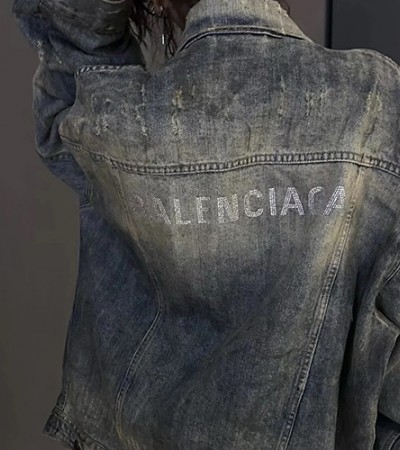 • [홍콩명품.BALENCIAGA] 발렌시아가 24SS 로고 스터디장식 데님 자켓, BM16642, KB, 홍콩명품의류,구매대행,온라인명품