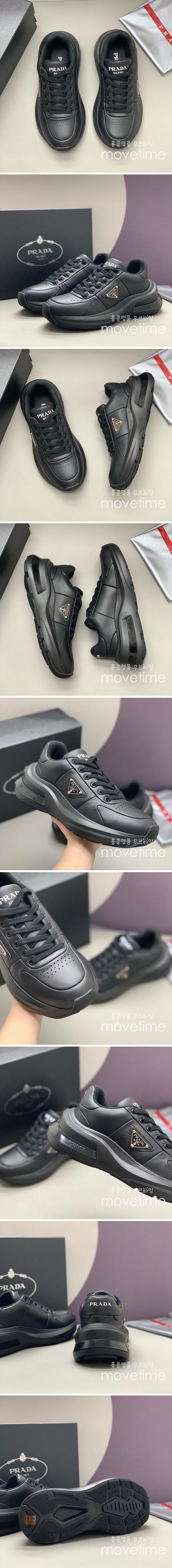 • [홍콩명품,PRADA] 프라다 24SS 삼각로고 레더 가죽 스니커즈 운동화 (블랙), SE4217, PMD, 명품스니커즈,운동화,구두,로퍼,하이탑,신발