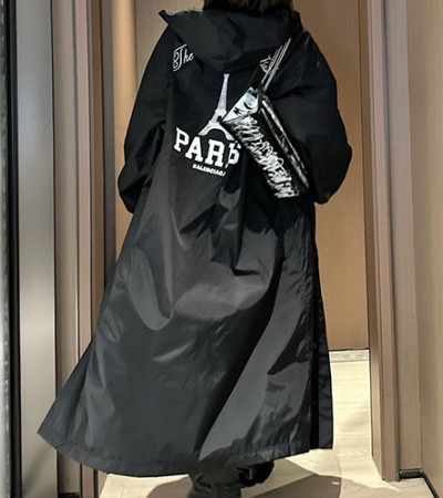• [홍콩명품.BALENCIAGA] 발렌시아가 24SS 로고 프린트 후드 바람막이 롱 코트 자켓 (블랙), BM16853, JU, 홍콩명품의류,구매대행,온라인명품