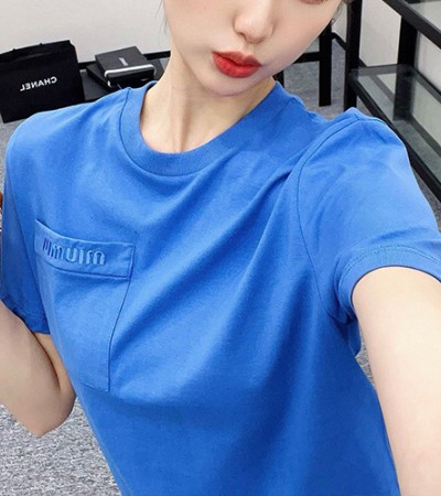 [홍콩명품,MIU MIU] 미우미우 24SS 로고 자수 여성 반팔 티셔츠 (2컬러), BM16987, TBG, 홍콩명품의류,구매대행,온라인명품 > 여성몰