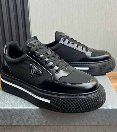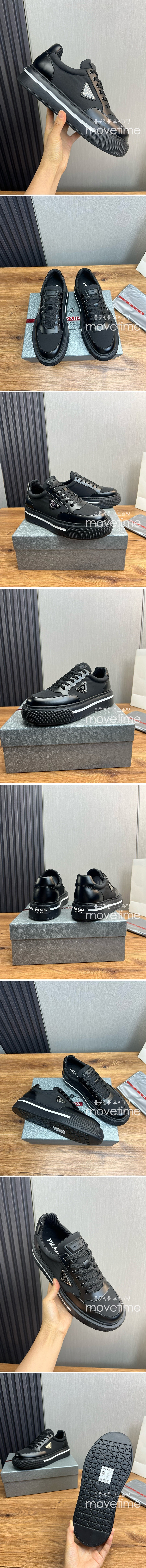 • [홍콩명품,PRADA] 프라다 24SS 삼각로고 레더 가죽 레이어드 스니커즈 운동화 (블랙), SE4234, S3, 명품스니커즈,운동화,구두,로퍼,하이탑,신발