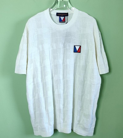 • [홍콩명품.LOUIS VUITTON] 루이비통 24SS 로고 니트 반팔 티셔츠 (화이트), BM17260, JL, 홍콩명품의류,구매대행,온라인명품