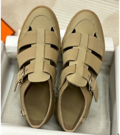 • [홍콩명품.Hermes] 에르메스 24SS 로고 레더 가죽 구두 샌들 (베이지), SE4275, H3, 명품스니커즈,운동화,구두,로퍼,하이탑,신발